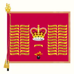 Both the standard and the guidon are usually of crimson trimmed in gold and with the regiment's insignia in the centre. The regiment's battle honours are emblazoned on both the obverse and reverse, up to a maximum of 22 on each side.