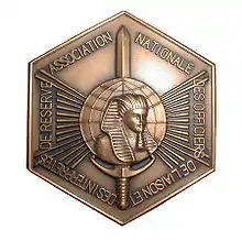 Military interpreters in the French Army translate into and out of foreign languages for the French military. A sous-officier or interpreter officer serves in uniform, accompanying the French armed forces on all its foreign expeditions for 200 years. Today known as Officiers et Sous-officiers de Réserve Qualifiés Langues Etrangères (OSRQLE), they were formerly known as Officiers Linguistes de Réserve de l'Armée de Terre (OLRAT), Interprètes/Officiers Interprètes de Réserve de l'Armée de Terre (IRAT/OIRAT) or Officiers de Liaison et Interprète de Réserve (OLIR). The unit was first set up for Bonaparte's Egyptian expedition, and so their insignia is a sphinx on a blue terrestrial globe divided up by lingual barriers, on a round grey circular background with rays symbolising each of the languages spoken by their unit
