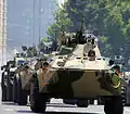 On 10 December 2020, a victory parade was held in honor of the Azerbaijani victory in the Second Nagorno-Karabakh War.[17] A group of the military servicemen who distinguished themselves during the Patriotic War (how the conflict is referred to in Azerbaijan) marched in the parade and showcase military equipment, unmanned aerial vehicles and aircraft, as well as war trophies. 3,000 servicemen marched in the parade, which included a contingent from Turkish Special Forces Command march on the square.[18][19][20] Turkish President Recep Tayyip Erdoğan attended as part of a state visit to Baku.[21][22][23] A military spokesperson described it as "the first important event in the history of Azerbaijan’s development, since the Victory Parade has never taken place in Azerbaijan and Freedom Square has never seen the Victory Parade".[24] In response to reports by Armenian social media that Armenian captives would take part in the parade, the State Security Service of Azerbaijan rejected the information as false saying that "humiliating prisoners of war is not a characteristic of the Azerbaijani people and our victorious army".[25]