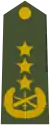 | Gjeneral | Gjeneral kolonel | Gjeneral lejtnant | Gjeneral major | Kolonel | Nënkolonel | Major | Kapiten i parë | Kapiten | Toger | Nëntoger | ||||||||||||||||||||||||||