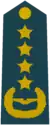 | Gjeneral | Gjeneral Lejtant | Gjeneral Major | Gjeneral Brigade | Kolonel | Nënkolonel | Major | Kapiten | Toger | Nëntoger | |||||||||||||||||||||||||||
