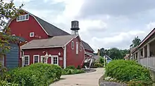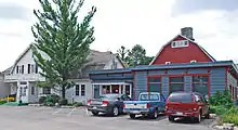 The original building faces east while the 1926 addition faces south. The barn, creamery, and stable that once served the farm still stand to the southwest, although they have been modified throughout their existence and do not contribute to the site's historical value. A parking lot lies to the main building's north and east. The two-story house as a small one-story addition that was built before the early 1900s. The Country Tea House extension in 1926 was built on the west side of the house. The vernacular, wood panel house sits on a stone foundation. A chimney is found on the north side of the building. Windows on the east and south elevations feature wooden pediments, those on the north side do not. Asphalt shingles adorn the roof.[1]