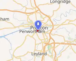 Miller Park is a public park under the management of Preston City Council. It is located on the banks of the River Ribble in Preston, Lancashire in the north west of England. The park is one of two city centre Victorian era parks, the other being the adjacent and larger Avenham Park. It was designed and built in the 1860s and has matured over the last 140 years into one of the most attractive parks in the region. As an English Heritage Grade II* listed park,[1] it features a number of historical structures including a sundial, a grotto and a fountain. There is also an impressive statue of the 14th Earl of Derby who was British prime minister 1866 - 1868 . The two parks are separated by the East Lancashire Railway embankment and access is through the Ivy Bridge and along Riverside Walk. The East Lancashire Railway line closed in the 1970s although the viaduct across the river, which is a Grade II listed building, remains, as it carries a public footpath across the river. The west edge of the park is bounded by the embankment carrying Preston's main rail link, the West Coast Main Line.