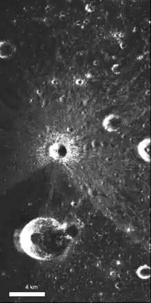 The Miniature Radio-Frequency instrument (Mini-RF) is a synthetic aperture radar (SAR) instrument on the Lunar Reconnaissance Orbiter (LRO), which is currently in orbit around the Moon. It has a resolution of 30 m/pixel and two wavelength bands, a primary band at 12.6 cm and a secondary band at 4.2 cm.[1][2] The original principal investigator of Mini-RF, Stewart Nozette, was arrested for espionage. Nozette was replaced by Ben Bussey, then of APL, the Applied Physics Laboratory where Mini-RF was assembled from components developed by a consortium of industry team members. Bussey accepted a position at NASA Headquarters and was replaced by the current principal investigator, Wes Patterson, also of APL. Previous SAR instruments, such as the radar on the Magellan mission to Venus, were large, massive, power-hungry, and expensive. Intended as a demonstration of cheap, lightweight SAR technology, the Mini-RF instrument was designed in response to these concerns. Because it was a technology demonstration, Mini-RF is sometimes not included in lists of LRO's instruments.