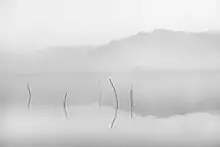 Minimalist photography focuses on simplicity and its artistic style can be encapsulated by the quote, "less is more." Minimalist photographers achieve this effect by casting aside all the unnecessary components in creating their works.[6] This principle is demonstrated in various minimalist photographs, for example, when capturing a mountain or an ocean on camera, the entirety of the scenery will be presented as one big vast space. The vacancy and bareness of the space shown enables the audience to imagine and craft their own version of interpretation and comprehension, instead of including the photographer's own inputs and insights. In order to expand and concentrate on the expansive space, it is crucial to minimize contradicting elements such as people or distracting buildings. Doing so conveys a sense of barrenness and desolation that creates a theatrical atmosphere and visual experience. Therefore, a minimalist photograph is often captured early in the morning, sunrise or dark at night. This ensures that the scene is not filled with crowds and that the overall composition appears neat and simplified.