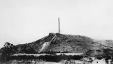 On 10 July 1901, the manager of the Pyrites Works, David Alexander Brown, was advised that his salary would be reduced from £8 to £6 per week. Angry about this decision, Brown went to the meeting of company directors that evening and demanded to be shown the minutes of the meeting at which his salary was reduced. Graham Haygarth, the meeting's chairman, refused and Brown pulled a revolver and shot Haygarth, killing him. Brown then tried to shoot another director, James Matchett, but the revolver misfired. The other directors ran from the room and Brown shot himself in the head, but failed to kill himself.[2] Brown was tried for murder and sentenced to death on 7 November 1901 at a Supreme Court sitting at Charters Towers Courthouse. Brown was hanged at Brisbane's Boggo Road Gaol on 9 December 1901.[3] The landmark chimney became known locally as "Brown's Folly". It was demolished in 1942 when it was considered a hazard to aircraft.[1]