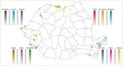 All counties of Romania |