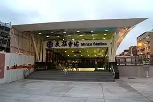 Minzu railway station (Chinese: 民族車站; pinyin: Mínzú Chēzhàn) is a railway station located in Sanmin District, Kaohsiung, Taiwan. It is located on the Pingtung line and is operated by the Taiwan Railways Administration. It is served by all local trains.[1]