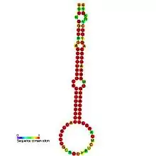 ![]() Predicted secondary structure and sequence conservation of mir-130 | |