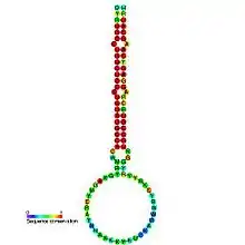 In molecular biology, mir-160 is a microRNA that has been predicted or experimentally confirmed in a range of plant species including Arabidopsis thaliana (mouse-ear cress) and Oryza sativa (rice).[1] miR-160 is predicted to bind complementary sites in the untranslated regions of auxin response factor genes to regulate their expression.[2] The hairpin precursors (represented here) are predicted based on base pairing and cross-species conservation; their extents are not known. In this case, the mature sequence is excised from the 5' arm of the hairpin.