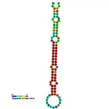 In molecular biology, miR-194 microRNA precursor is a small non-coding RNA gene that regulated gene expression. Its expression has been verified in mouse (MI0000236, MI0000733)[1] and in human (MI0000488, MI0000732).[2] mir-194 appears to be a vertebrate-specific miRNA and has now been predicted or experimentally confirmed in a range of vertebrate species (MIPF0000055). The mature microRNA is processed from the longer hairpin precursor by the Dicer enzyme. In this case, the mature sequence is excised from the 5' arm of the hairpin.