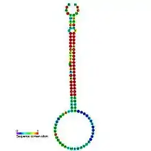 mir-395 is a non-coding RNA called a microRNA that was identified in both Arabidopsis thaliana and Oryza sativa computationally and was later experimentally verified. mir-395 is thought to target mRNAs coding for ATP sulphurylases.[1] The mature sequence is excised from the 3' arm of the hairpin.