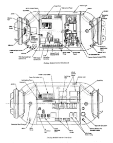 The Stykovochnyy Otsek (Russian: стыковочный отсек, English: Docking compartment), GRAU index 316GK, otherwise known as the Mir docking module or SO, was the sixth module of the Russian space station Mir, launched in November 1995 aboard the Space Shuttle Atlantis.[4] The module, built by RKK Energia, was designed to help simplify space shuttle dockings to Mir during the Shuttle-Mir programme, preventing the need for the periodic relocation of the Kristall module necessary for dockings prior to the compartment's arrival.[3] The module was also used to transport two new photovoltaic arrays to the station, as a mounting point for external experiments, and as a storage module when not in use for dockings.[1]