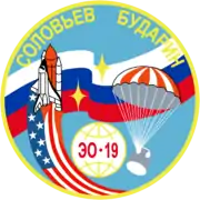 Mir EO-19 (Russian: Мир ЭО-19, also known as Principal Expedition 19)[3] was the nineteenth crewed expedition to the space station Mir, lasting from June to September 1995. The crew, consisting of Russian cosmonauts Anatoly Solovyev and Nikolai Budarin, launched on June 27, 1995 aboard the Space Shuttle Atlantis on the STS-71 mission. After remaining aboard Mir for approximately 75 days, Solovyev and Budarin returned aboard the Soyuz TM-21 spacecraft on September 11, 1995.[1][4]