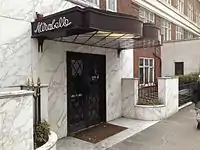 The restaurant was first opened in 1936.[2] The interior has a single main dining room, and two private dining rooms entitled the Pine Room and the Chinese Room. The restaurant is in the basement. Guests enter at street level and go downstairs.[3] The restaurant became popular following the Second World War, and in the 1950s and 1960s it was seen as the place to be.[4] Regulars of the restaurant included Orson Welles and Winston Churchill.[5] The restaurant was also used to entertain foreign guests of the British Government, such as in February 1962 when Lord Privy Seal Edward Heath dined with the Assistant Foreign Secretary of Yugoslavia.[6]