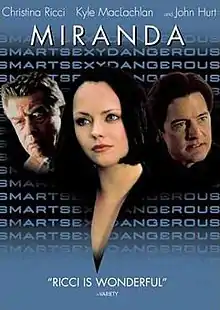 Miranda is a 2002 British comedy film starring Christina Ricci, Kyle MacLachlan, John Simm, John Hurt, Tamsin Greig and Julian Rhind-Tutt.[2] The film is classified as a romance/thriller by IMDb.