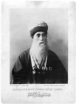 He was later transferred to the Transcaucasian Teachers Seminary in 1879. As the first teacher of Arabic and Persian at the seminary, he opened a school for the poor in Tbilisi at his own expense, and later, in the early 20th century, expanded it to become a six-grade "Mufti-Islamic School". He awarded scholarships to 43 Azerbaijanis during his career until 1883.[3] He was relieved of teaching at the end of 1883 and appointed Mufti of Caucasus, a position he held until March 1917.