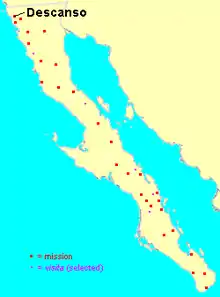 Mission El Descanso (Spanish: Misión El Descanso), also known as Misión San Miguel la Nueva, was a Spanish mission located in what is now Playas de Rosarito Municipality, Baja California. It was the founded by the Dominican missionary Tomás de Ahumada in 1817 in an area long inhabited by the Kumeyaay people.