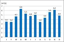 The average monthly discharge of the Mislinja at Otiški Vrh (1971–2000)