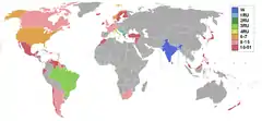 Rhodesia - Was barred from participating from 1966-1979 due to the country's political situation. Became Zimbabwe in 1980 and debuted as Zimbabwe at Miss World.