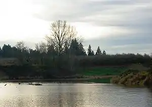 Mission Creek is a tributary, roughly 9 miles (14 km) long, of Champoeg Creek in Marion County in the U.S. state of Oregon. The creek arises southwest of St. Paul in the French Prairie region of the Willamette Valley and flows generally northeast to meet Champoeg Creek near Champoeg. The combined streams then flow less than 1 mile (1.6 km) before entering the Willamette River, 45 miles (72 km) from its confluence with the Columbia River.[3][4]
