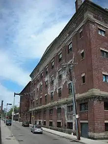 In the late 19th century through the 1970s, the neighborhood was once home to large numbers of families of recent immigrant descent: mostly Irish, but also Germans, Italians, and others. After the 1950s, the combined effects of urban renewal, white flight, and institutional growth caused many to flee the neighborhood. In the early 1960s, the Boston Redevelopment Authority razed several homes in the Triangle District section of the neighborhood to make way for the Whitney Redevelopment Project,[20] which are three high-rise towers along St. Alphonsus Street. They include Charlesbank Apartments (276-unit highrise that became a limited equity co-op), Back Bay Manor (270 units, now known as CityView at Longwood), and Franklin Square Apartments (formerly Back Bay Towers – 146 units, now known as The Longwood). This project was one of Boston's earliest redevelopment projects not funded by federal renewal monies.[19] Eastward across St. Alphonsus Street is Mission Main, one of the nation's oldest public housing developments. The original thirty-eight 3-story brick structures built between 1938 and 1940 were demolished in the mid-1990s and replaced with 535 new apartments with a mix of subsidized and market-rate units.[21]