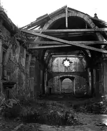 By 1850, the mission was nearly a ruin. The stone chapel building was deteriorating while most of the adobe buildings were eroding away. The roof collapsed in 1852.[29]