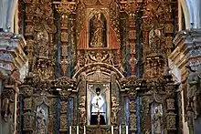 The mission that survives today was built between 1783 and 1797, which makes it the oldest European structure in Arizona. Labor was provided by the O'odham.[1] An outstanding example of Spanish Colonial architecture in the United States, the Mission San Xavier del Bac hosts some 200,000 visitors each year.[1] It is a well-known pilgrimage site, with thousands visiting each year on foot[4] and on horseback, some among ceremonial cavalcades or cabalgatas.