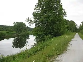 The MVRT spans 26.1 miles (42 km) from St. Albans City to Richford, passing through the towns of Swanton, Fairfield, Sheldon, Enosburg and Berkshire. The trail passes through forest, farmland and several villages, including Sheldon Springs, Sheldon Junction, Enosburg Falls, and East Berkshire. With a crushed limestone surface, it parallels the Missisquoi River along much of the eastern portion, and never exceeds a grade of three percent.