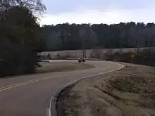 MS 21 travels east through farmland, then woodlands, to have an intersection with MS 397 at the Preston community before entering Noxubee County. The highway now passes northeast through rugged, hilly wooded, and remote terrain for several miles to become concurrent with MS 39 and entering Shuqualak. MS 21/MS 39 travel along Main Street as they pass through neighborhoods and downtown before coming to an intersection with MS 145, where MS 21 ends and MS 39 continues only 0.3 miles (0.48 km) west to end at an intersection with US 45.[2]