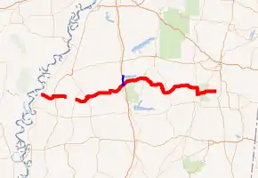 Mississippi Highway 32 (MS 32) is a state highway in northern Mississippi it runs from east to west for 152.0 miles (244.6 km), serving the counties of Bolivar, Sunflower, Tallahatchie, Yalobusha, Calhoun, and Chickasaw. The publicly accessible portion of MS 32 is divided into two sections, the first of which begins near Perthshire and runs eastward to the rear entrance of the Mississippi State Penitentiary (MSP). The second section begins at the main entrance of MSP and runs eastward to MS 32's terminus in Okolona. A private portion of MS 32 runs from the main entrance of MSP to the rear entrance of MSP.[2]