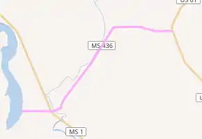 MS 436 starts at Eastside Lake Washington Road, near the eastern shore of Lake Washington and the unincorporated area of Glen Allan.[3] The route travels eastward through farmland to MS 1 in Hampton,[3][5] and it crosses Steele Bayou afterwards.[3] The road turns northeastwards at Grace Road and borders the Yazoo National Wildlife Refuge. The road travels along Steele Bayou and it intersects the entrance to the refuge at Beargarden Road.[5] At Woodsaw Mill Road, MS 436 turns east and away from the refuge. Past the second intersection with Beargarden Road, the road shifts south towards the Washinghton–Sharkey county line. The route travels on the county line, ending at US 61 at a three-way junction near Percy.[3]