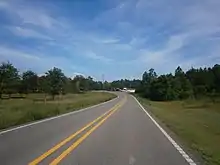 Near Sellers in Hancock County, the road travels northwest to its T-intersection at MS 603. MS 53 turns northward at the intersection, and shifts westward at Dogwood Lane, south of the county line. The highway enters Pearl River County past Road 205.[4] Once inside Pearl River County, the road intersects multiple private driveways through the farmland.[7] At Savannah, MS 53 intersects Savannah Millard Road, which has an interchange at I-59. Past Jesse Wells and Restertown Roads, the highway intersects a road that leads to the Poplarville-Pearl River County Airport.[5] The highway enters Poplarville near the diamond interchange at I-59,[8] and it becomes concurrent with MS 26.[7] MS 53 ends at US 11 after crossing a Norfolk Southern railroad and Jumpoff Creek.[7][8]