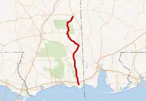 | Wayne | | 93.1 | 149.8 | Strickland Road (MS 536 west/FR 201) - De Soto National Forest | Eastern terminus of unsigned MS 536 |