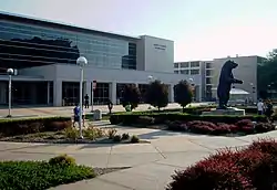 The four-story Robert W. Plaster Student Union (PSU) is a student activity center located in the center of campus between the main academic and residential areas. This building provides a place for students to dine, socialize, study, shop, and see films and guest speakers in the theater. It also houses a bank, a convenience store, a copy shop, a ticket outlet, and a video game/media store. A variety of meeting rooms are also located in the PSU and over 15,000 meetings are even hosted there each year.[41] Offices located in the PSU include Student Engagement, Student Conduct, Multicultural Resources, Zip Card, Campus Recreation, Outdoor Adventures, Sodexo Campus Services, Citizenship and Service-Learning, Conference Services, various student organizations, the dean of students, Judicial Affairs, Disability Support Services, and Student Orientation, Advisement & Registration (SOAR). The PSU also includes the Leland E. Traywick Parliamentary Room. Dedicated on February 18, 2004, it is named to honor a former MSU president and his introduction of shared governance, including the establishment of the Faculty Senate, during his presidency. A bronze bear statue was dedicated to the University in 1999 and stands at the student union's front entrance. Also located in front of the PSU is the North Mall, which is the location of the "Bear Paw." The Bear Paw is an outdoor plaza and performance area constructed for concerts, forums, rallies, demonstrations, and other public activities. Any member of the university community (such as students, faculty, or staff) may reserve the Bear Paw, and when not reserved, it is available for expressive activities on a first come, first served basis.[42]