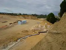 After another 7-year-hiatus, construction began on a 4-kilometre extension to Burns Beach Road, with a diamond interchange at Shenton Avenue and an overpass for Moore Drive.[28] Local residents were opposed to aspects of the initial plans, such as the design of a section near a primary school and the clearing of native vegetation. The state government therefore established the Community Consultative Working Group and later the Construction Reference Group, composed of members of the local community. The input from these groups resulted in several changes to the design.[29][30] The project was managed by Main Roads in conjunction with Macmahon Contractors. Construction of the extension was initially planned for May 2006, but began on 14 December 2006. By July 2008, 90% of the works had been completed and the new section was predicted to open in September 2008.[31][32] However, the official opening was not until 2 November 2008, when the road was opened by Western Australia's Minister for Transport, Simon O'Brien, and the previous Minister for Planning and Infrastructure Alannah MacTiernan.[18][28] The $160 million project was completed $10 million under budget.[33] The opening was celebrated with a procession of vintage cars along the new freeway segment.[34]