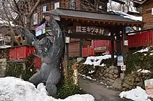 Miyagi Zao Fox Village, also known as Kitsune Mura, is a tourist attraction and sanctuary for foxes in Shiroishi, Miyagi, Japan where visitors can feed and interact with foxes.[1][2][3][4] The village's main exhibit is an open area where foxes roam around and visitors can enter to interact with and feed them, although attempting to pet or hand-feed the foxes is not advised as they may bite.[5] There are over 100 foxes, including typical red and arctic foxes, foxes with uncommon coat colors, such as silver and platinum foxes, and red-arctic fox hybrids.[1][6] The village also has rabbits, miniature horses, goats, and guinea pigs, in addition to gift and snack shops.[2][5] In the spring, events are hosted in which visitors can hug fox kits.[7]