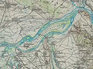 Warm Mlava (Topla Mlava) is a canal that connects Mlava (Wild Mlava) with the Danube east of the village of Selo Kostolac and west of the Kostolac B TPP. Its length is 4.3 km from the brush to the mouth, and from the yellow bridge (Viminacijum Bridge) to the intersection of 6.1 km. Its characteristics are warm water that comes out of the brush because of which there are plenty of fish and its biggest resident is pike. The width is about 3 to 7 normal Mlava basins (90–210 m) and the depth is up to 10 m.