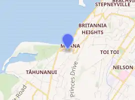 It lies on State Highway 6 to the southwest of Nelson city centre, and immediately to the northeast of Tāhunanui.[3]