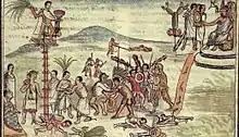 Early in his rule, he led a conquest against the state of Oaxaca in 1445.[11] Moctezuma also then went on to extend the boundaries of the Aztec empire beyond the Valley of México to the Gulf Coast, known as the "Sea of the Sky", for the first time, subjugating the Huastec people and Totonac peoples and thereby gaining access to exotic goods such as cocoa, rubber, cotton, fruits, feathers, and seashells.[11] The Aztec were then known as the "Neighbors of the Sea of the Sky", as they controlled all the territory up to the Gulf of Mexico.