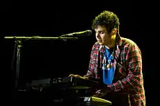 "Step" was inspired by a lyric from Souls of Mischief's 1993 song "Step to My Girl", which sampled Grover Washington, Jr.'s cover of Bread's "Aubrey". The vocal melody of the chorus interprets the melody of "Aubrey" so close that the band had to clear it as a sample.[8] The chorus vocals were recorded in Ableton Live using the onboard microphone in Batmanglij's MacBook Pro.[8] Alexis Petridis viewed that some songs echo lesser known "musical tropes" from the group's previous albums—a mock Irish folk influence is heard on "Unbelievers", while "Step" features "Left Banke-inspired baroque pop".[13] More generally, Steven Edelstone of Paste magazine regarded the music as a mix of "chamber pop and world-weariness".[14] According to Brice Ezell from PopMatters, this album is "very much an indie rock record" because of Koenig's voice and diction, which reveals "the youth that he and his bandmates so often strive to shrug off." Ezell asserts that, on songs such as "Unbelievers", the "reckless abandon" expressed by the lyrics reveals "the group's grasp on the genuine rebellion that indie rock ought to strive for."[15]