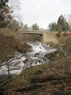 An old stone bridge is still located by Helvetesfossen. It was restored by the Norwegian Public Roads Administration in 1993.[2]