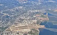 Aerial view of NAS Moffett Field and NASA Ames Research Center