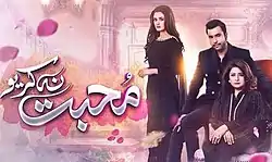 Mohabbat Na Kariyo (Urdu: محبت نہ کریو, transl. Don't ever fall in Love) earlier titled Makafaat is a 2019 Pakistani romantic drama television series produced by master mind productions . It features Hira Mani, Zarnish Khan and Junaid Khan in their second on-screen appearance together after Sun Yaara. It also has Atiqa Odho, Ali Ansari and Mariyam Nafees in supporting roles. It was first aired on 11 October 2019 on Geo Entertainment.[1][2][3][4][5]