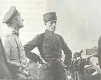 In 1920 Mohammad Taqi returned to Iran and joined the Gendarmerie.[1] In June 1920 he was promoted to the rank of Colonel and in September 1920 he became commander of Gendarmerie of Khorasan.[1] On 3 April 1921 in a military coup with his small force of only 200 gendarmes, he had Ahmad Qavam, the Governor-general of Khorasan, arrested and sent him to Tehran where he was imprisoned. He then became head of the provincial Autonomous Government of Khorasan. In June, Ahmad Qavam was released from prison and became Premier of Iran. He was determined to take revenge & suppress Pessian. He did so by gaining the approval of Reza Khan & dispatching the Cossack forces to Khorasan. Having previously been the governor of that province, Qavam had developed a strong relationship with the local chieftains and dispatched them to confront Pessian also. Sardar Mo’azez Khan Bojnurdi succeeded in gaining the cooperation of the Shirvan chieftains in mobilizing the kurds in Quchan. To combat this, Pessian gathered his scant forces to face the insurgency in Ja’farabad (near Quchan). This occurred on 3 October 1921 when Pessian and his small force of 150 gendarmes faced a force of strong 1,000 plus mounted Kurdish tribesmen. In the fight that ensued some of the Gendarmes left the battle field. Many of Pessian's comrades were killed and he was eventually surrounded and beheaded.[6] His head was brought to Tehran to prove that he had been killed. For five continuous years after his death, on 3 October people of Khorasan mourned his death.[7]