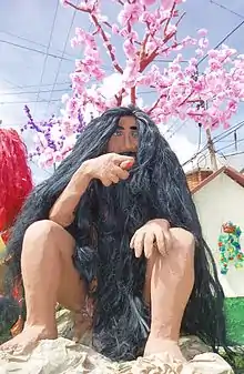Various different legends exist about the Mohan, with many of them emerging from Colombia. In Colombia, Mohan can also mean a forest or barren land spirit. In some legends, it is a satyr-like being who steals and rapes young women and lives in a cave-like grotto in the bottom of the great jungle rivers where he keeps his female captives. In others, it is depicted as the spirit of an old Indian, brawny and stout, with a terrifying grin and stare, with larger than human stature and proportions, who steals fishermen's bait, catch or nets, and has the power to change shape into a cat-like beast. Other legends describe the Mohan as a "big-headed Indian, with short legs and fish fins on his back, and very brown."[1] He is portrayed as an extremely hairy being with a very treacherous personality who dwells in the backwaters and is feared by many people. He also causes mischief for young girls who come to wash clothes in the water.[2] The Mohan is also known as an avatar whose form shamans are able to adopt.[3] One myth tells of how a shaman became an alligator in order to be close to the girls who played in the river. The shaman was not able to fully transform back into a human, and became an alligator with a human head.[2] The Poira, whose name is interchangeable with the Mohan, is described by others as an Indian warlock who lives on the Cerro del Pacandé in Tolima, Colombia.[1] The Poira is also believed to be a small, naked invisible boy or adult who can also appear formless or as a black bear.[4]