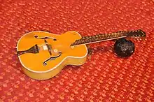 A Mohan Veena is either of two distinct plucked string instruments used in Indian classical music, especially Hindustani classical music which is associated with the northern parts of the Indian subcontinent.[1][2][3] Later Vishwa Mohan Bhatt modified a Hawaiian guitar to create an instrument also called the mohan veena, with Bhatt naming the instrument after himself. The latter instrument has become more closely associated with the name, especially following Bhatt winning the Grammy Award in 1994.[4]