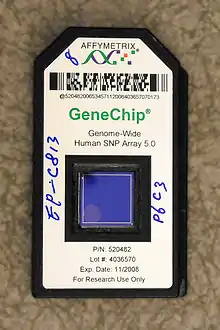 There's also microarrays that utilize hybridization mechanism to do diagnostics of cancer. More than a million of different probes can be synthesized on an array with Affymetrix's Genechip technology with a detection limit of one to ten copies of mRNA per well.[22] Optimized microarrays are typically considered to produce repeatable relative quantitation of different targets.[51] Currently, FDA have already approved a number of diagnostics assays utilizing microarrays: Agendia's MammaPrint assays can inform the breast cancer recurrence risk by profiling the expression of 70 genes related to breast cancer;[52] Autogenomics INFNITI CYP2C19 assay can profile genetic polymorphisms, whose impacts on therapeutic response to antidepressants are great;[53] and Affymetrix's CytoScan Dx can evaluate intellectual disabilities and congenital disorders by analyzing chromosomal mutation.[54]