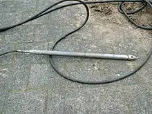 The standard approach to moling is to dig a hole about 1 m square and 2 m deep. Such a hole is small enough that it can be dug by hand instead of by machine in inaccessible locations. The mole is then entered into the earth on the horizontal face at the bottom of this hole. A destination hole of similar proportions is also dug, and this is where the mole emerges. The mole itself is a steel cylinder about 60 cm long and 6 cm in diameter. It works as a pneumatic cylinder with pulsed compressed air causing the head of the mole to repeatedly hammer against the soil in front of the mole. Once the mole has passed through the earth the pipe can be pulled through the long horizontal hole.