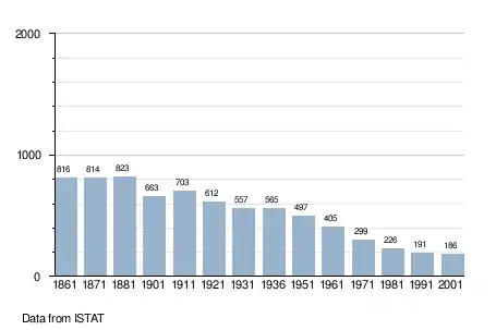 - "Superficie di Comuni Province e Regioni italiane al 9 ottobre 2011". Italian National Institute of Statistics. Retrieved 16 March 2019.